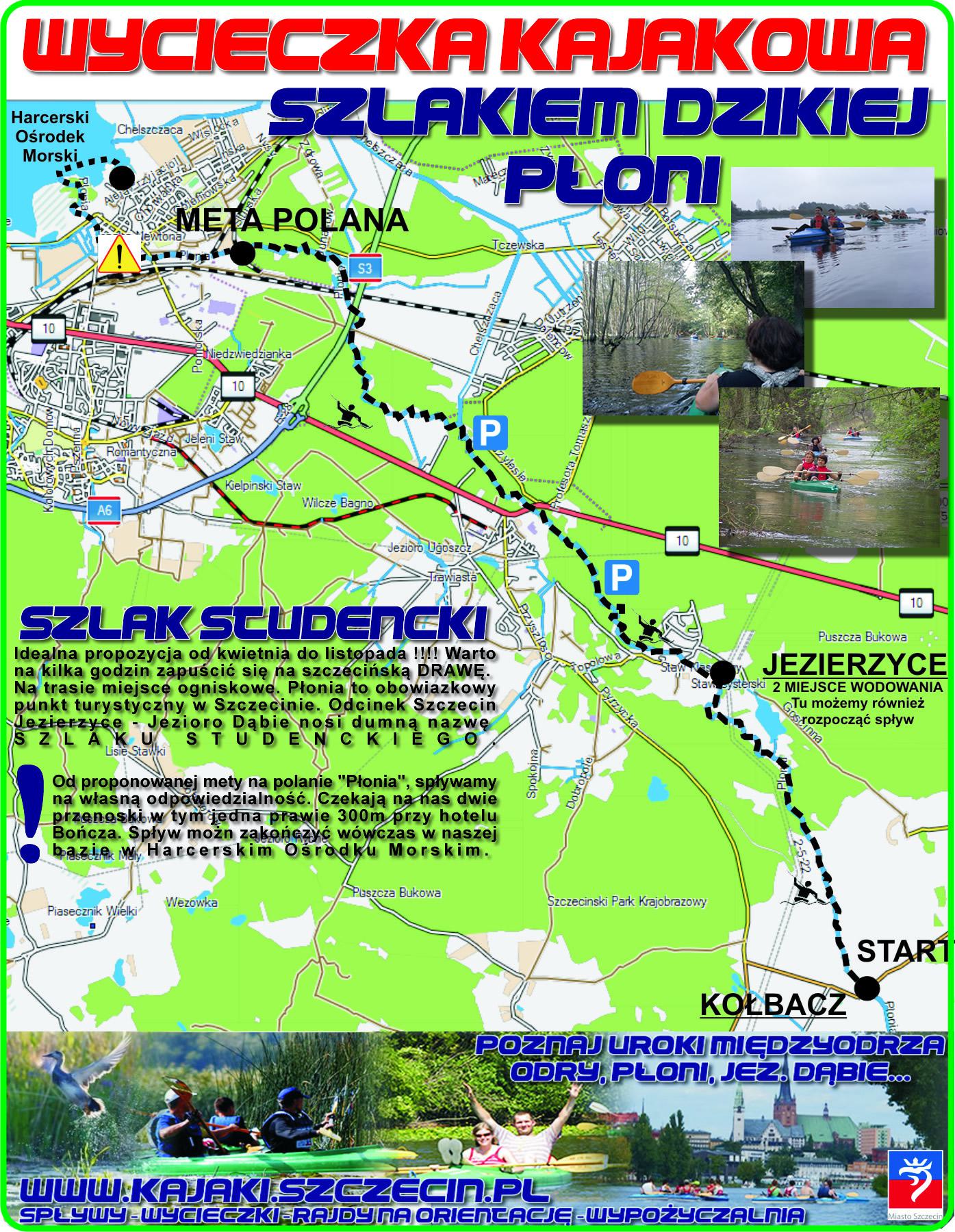 Start w Szczecinie Jezierzycach, obok mostu nad rzeką Płonia w okolicach godz. 10:00 (szegółowa informacja najpóźniej w piątek na stronie i wysłana mejlem do zgłoszonych uczestników). Spływ ma charakter indywidualny co oznacza że my udostępniamy i dowozimy jedynie sprzęt.